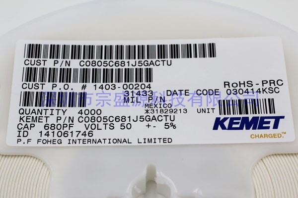 KEMET陶瓷電容 0805 50V 0.68UF C0805C681J5GACTU